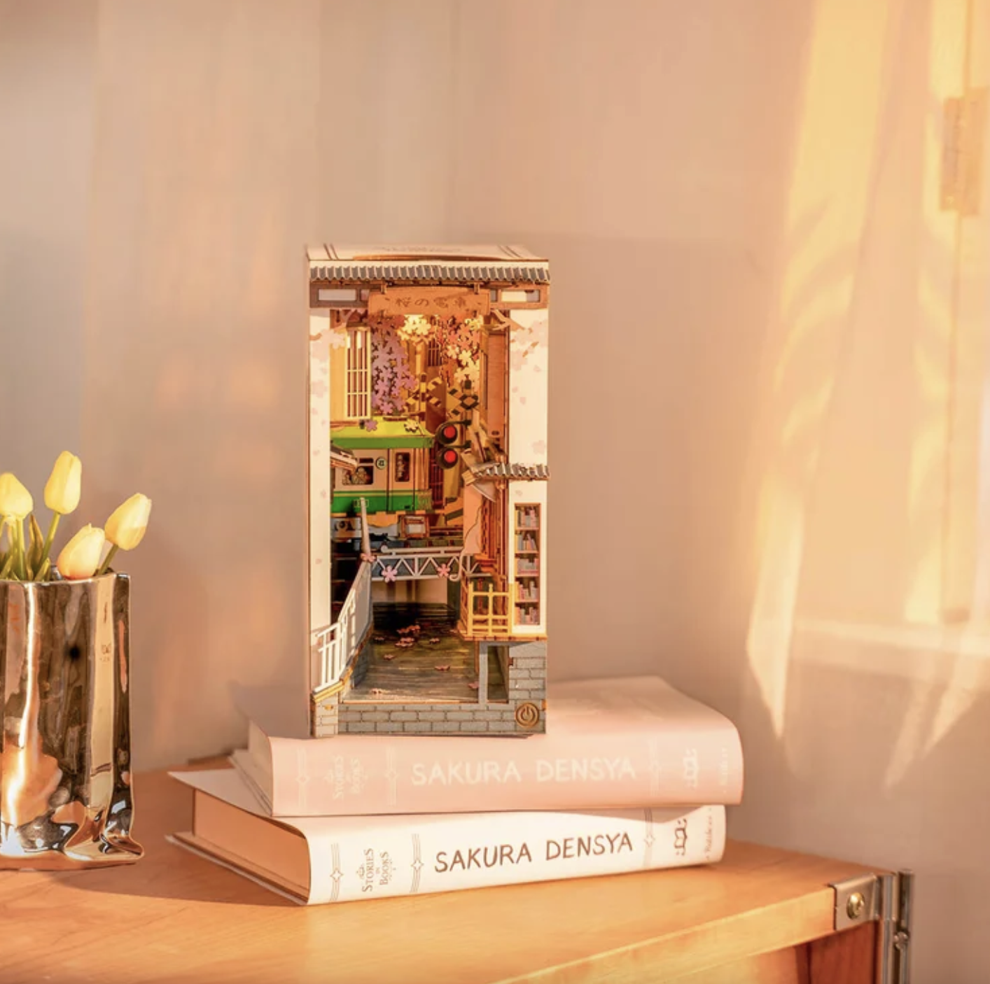 Craft a beautiful spring-themed book nook with the Robotime-Rolife Sakura Densya TGB01 DIY wooden puzzle kit. This delightful kit lets you create a stunning bookshelf insert, inspired by the charming streets of Tokyo during spring. It's an excellent project for those who enjoy building with their own hands, and the finished product adds a touch of character to any room in the house.