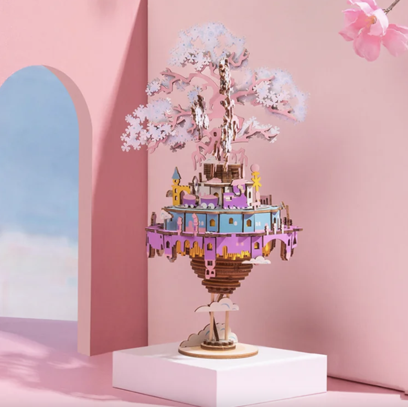 The Rolife City in the Clouds is a fantastic DIY music box kit that allows you to build a beautiful floating city with a stunning wisdom tree. This 3D wooden puzzle kit is meticulously designed and features a mesmerizing color scheme of blue and purple that evokes a celestial ambiance. Constructing it is an enjoyable exercise, and once finished, it plays a familiar melody - "Castle in the Sky."