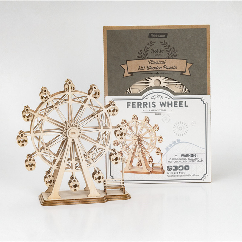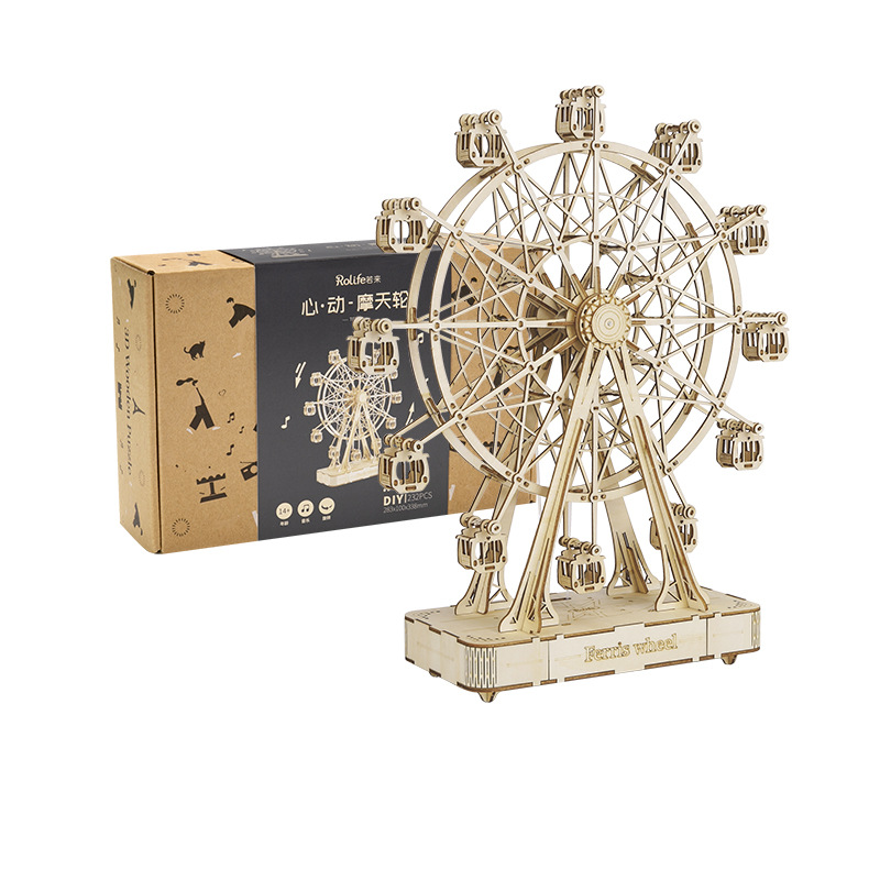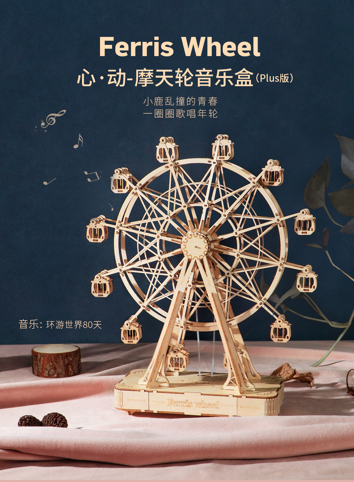 Diy Puzzle Wooden Model Tabletop Ornaments Rotatable 3d Music Box Ferris Wheel Gift